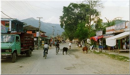 sidan av gränsen. Den första nepalesiska staden som passerades