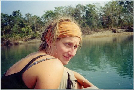 | Men när väl solen kommit upp över bergen, och morgondimman lättat, blev färden riktigt njutbar och blickarna fixerades på stränderna i jakt på sällsamma djur. Hjortar med stora spretiga kronor skymtades vid ett flertal tillfällen utan att egentligen fånga vårt intresse. Visst var de vackra, särskilt med den dramatiska nepalesiska naturen i fonden; men vi ville se farliga rovdjur, helst en tiger, eller kolossversionerna av gräsätarsläktet - enorma elefanter och bastanta noshörningar. | ||
