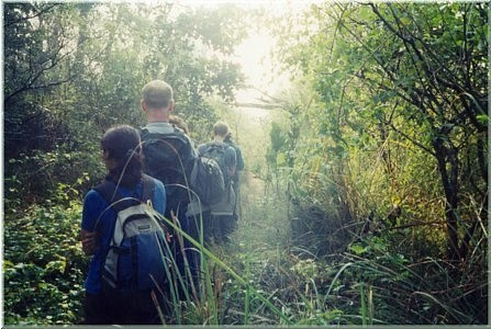 | vaken än vad den tidiga timmen förtjänade. Gruppen lastades in i ett par jeepar för att transporteras till utgångs-punkten för dagens flodfärd, eller på modernt actionspråk - rafting experience. | |||||